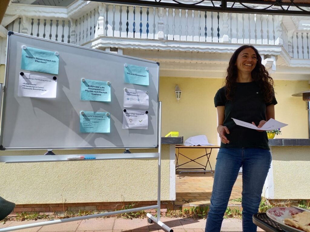 Rachaël Draaisma hat die Nasenarbeit mit Pferden maßgeblich entwickelt und systematisch strukturiert. Sie übertrug Erkenntnisse aus der Nasenarbeit mit Hunden auf Pferde und schuf ein Konzept, das auf freiwilliger Zusammenarbeit, feiner Körpersprache und emotionaler Balance basiert. Dieses Training ermöglicht eine tiefe Verbindung zwischen Pferd und Mensch, basierend auf gegenseitigem Respekt und Vertrauen.